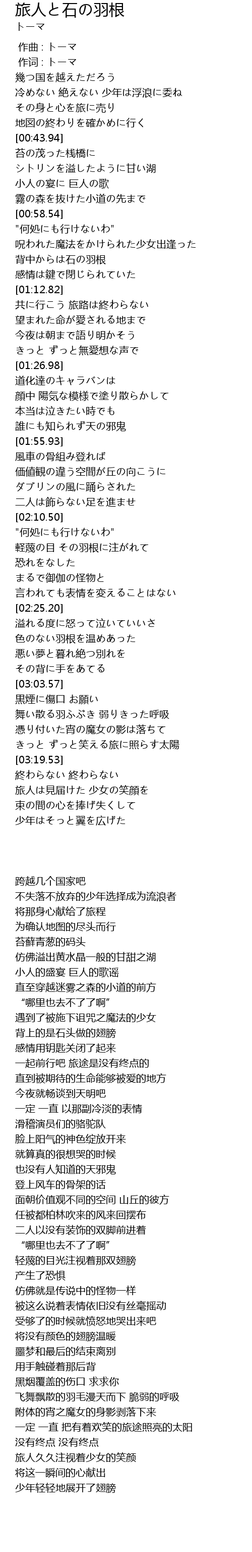 | [03:21.75] | 旅人は見届けた 少女の笑顔を |