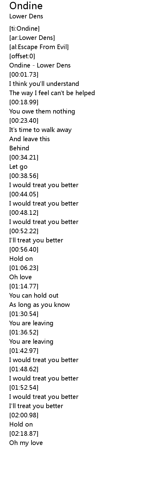 | [00:00.40] | Ondine - Lower Dens |