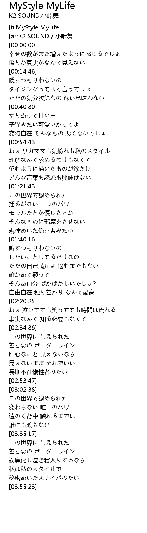 | [ti:MyStyle MyLife] | |