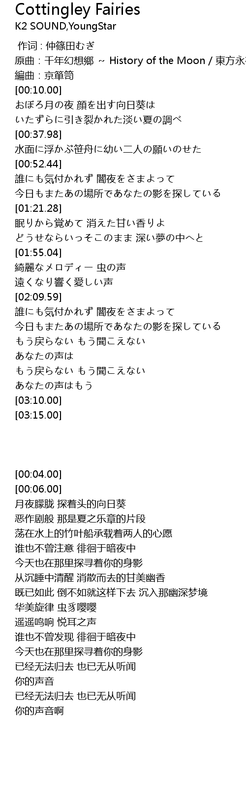 | [00:04.00] | 原曲:千年幻想郷 ~ History of the Moon / 東方永夜抄 |