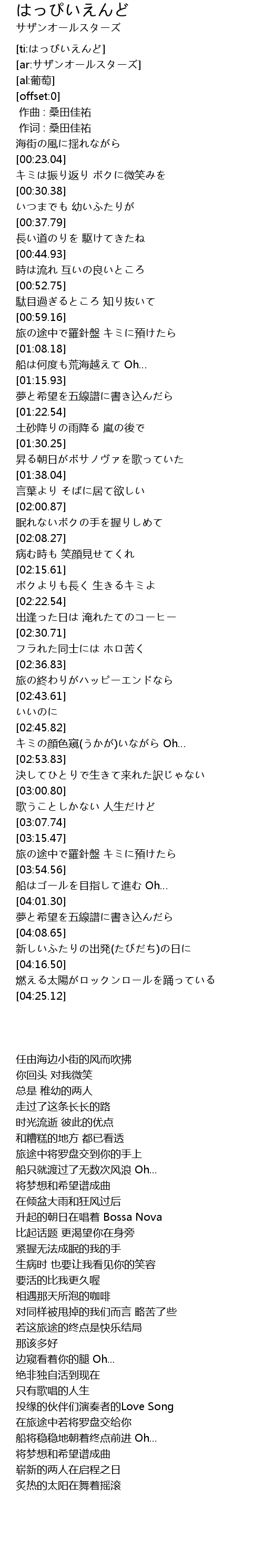 | [00:00.00] | 作曲 : 桑田佳祐 |