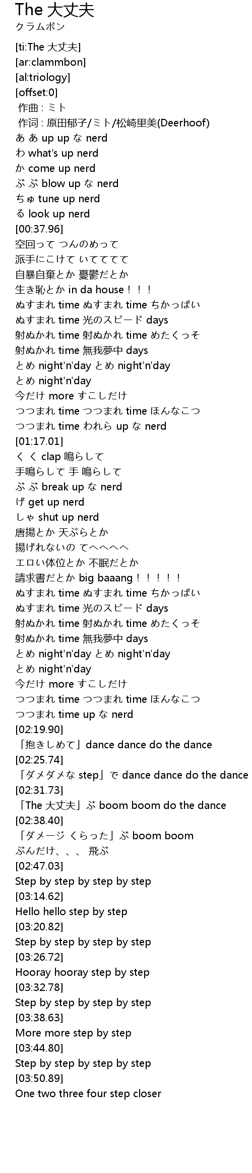 | [02:32.66] | 「The 大丈夫」ぶ boom boom do the dance |