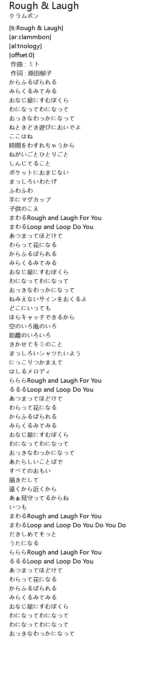 | [02:03.40] | らららRough and Laugh For You |