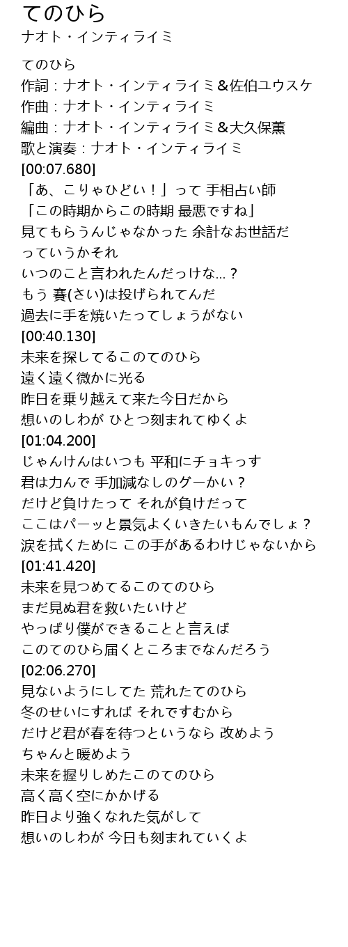 | [00:00.000] | てのひら |