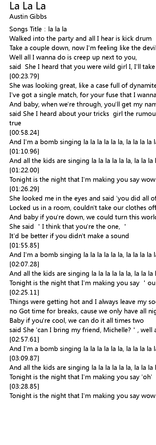 | [03:02.55] | And I'm a bomb singing la la la la la la, la la la la la la la |