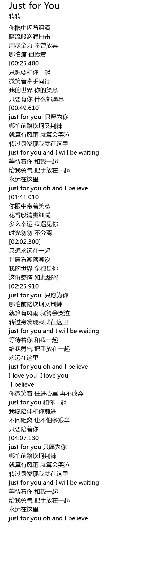 | [00:50.050] | just for you zhǐ yuàn wèi nǐ |