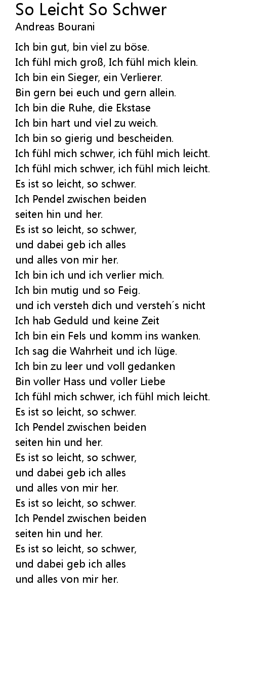 | Es ist so leicht, so schwer. | |