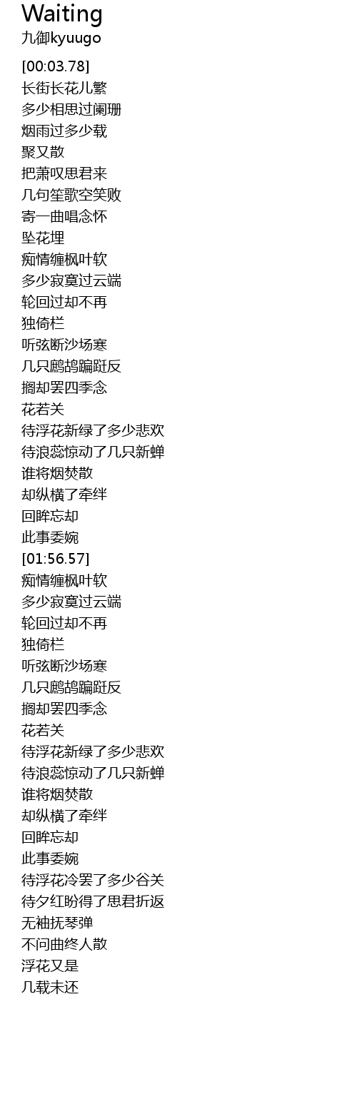 | [01:28.14] | 待浮花新绿了多少悲欢 |