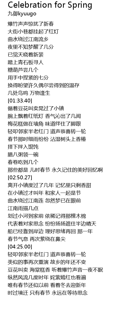 | [04:18.68] | 春节气息 再次萦绕在鼻尖 |