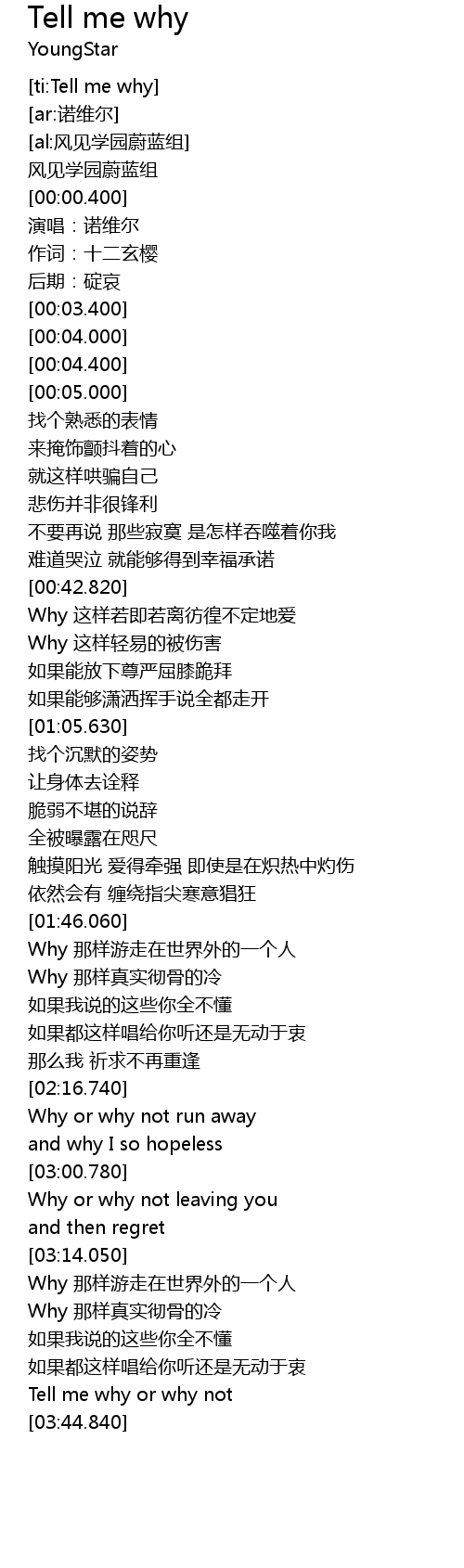 | [ti:Tell me why] | |
