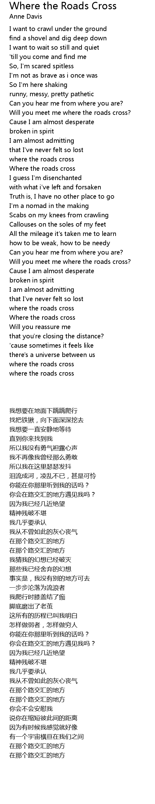 Will you meet me where the roads cross? |