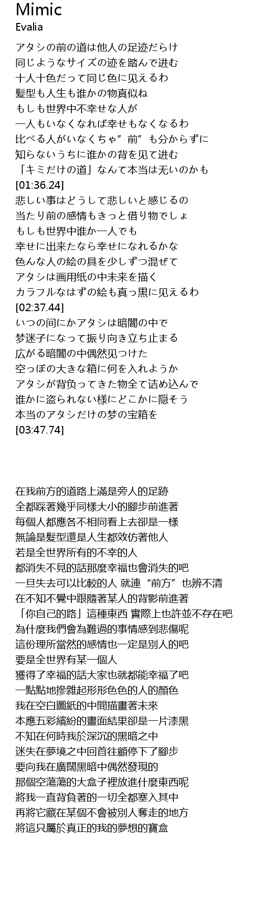 | [01:50.82] | 当たり前の感情もきっと借り物でしょ |