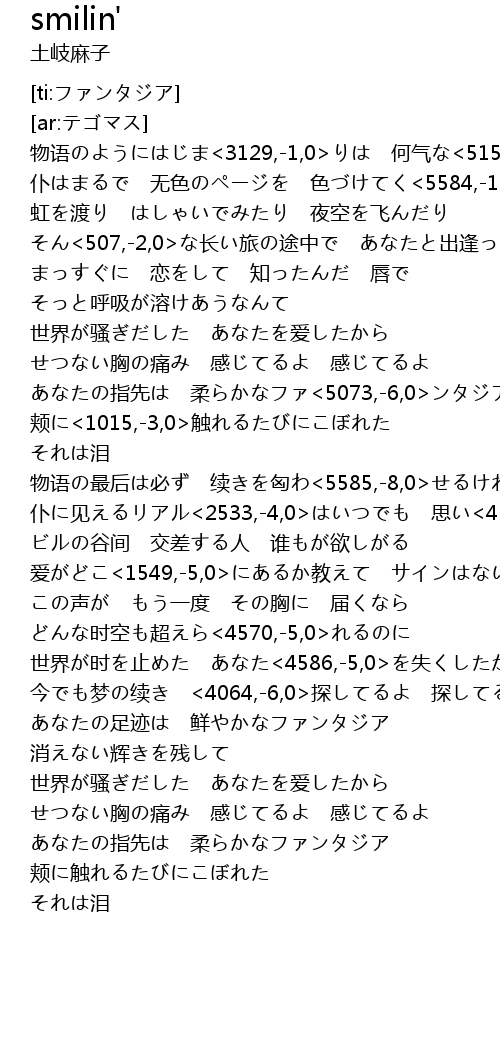 | [01:14.508] | あなたの指先は 柔らかなファ<5073,-6,0>ンタジア |