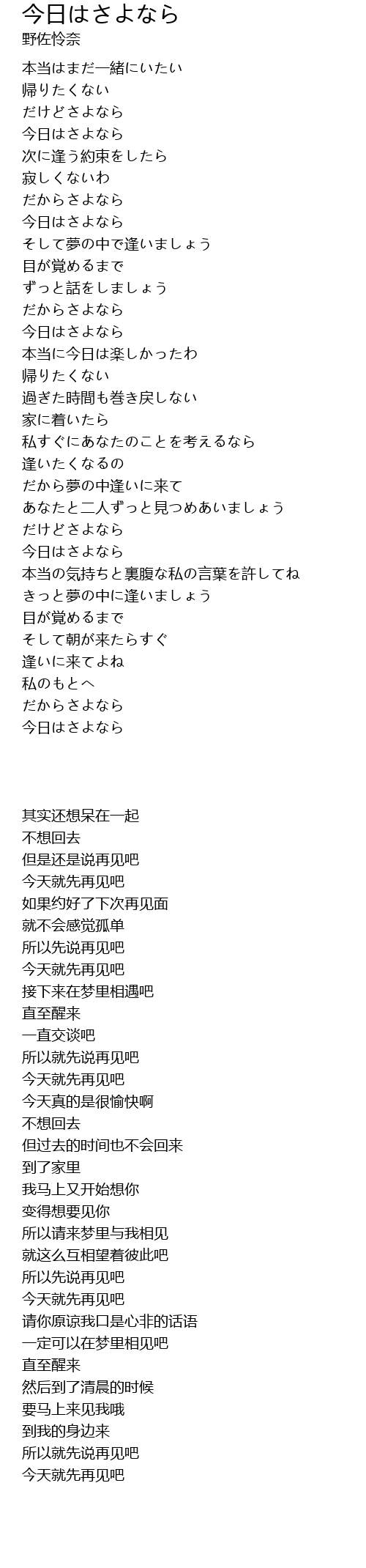 | Song | 今日はさよなら |