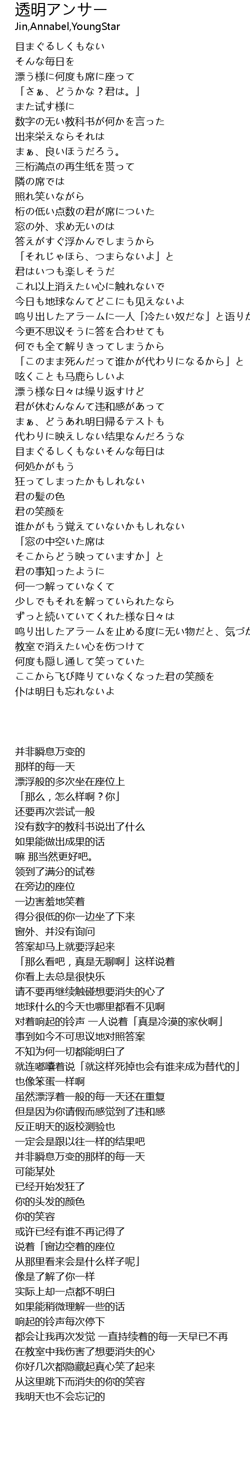 | [03:28.01] | 教室で消えたい心を伤つけて |