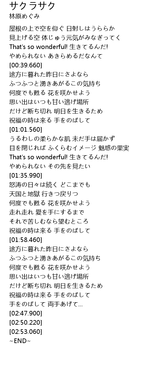 | [02:37.760] | 祝福の時は来る 手をのばして |