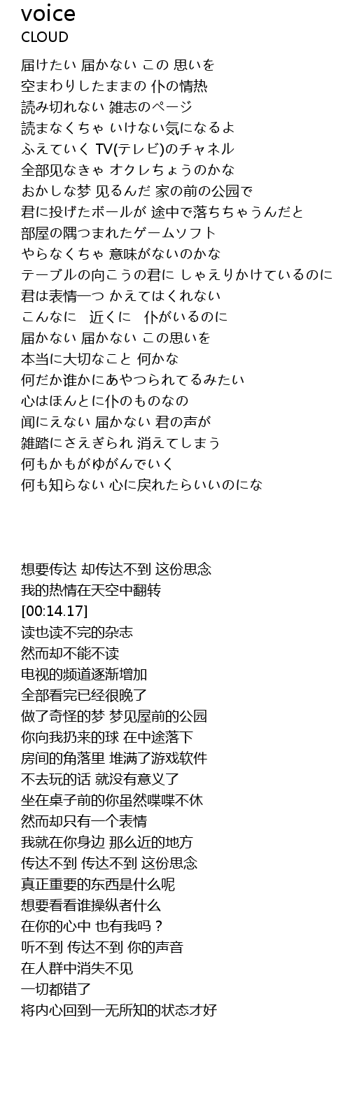 | [02:38.60] | 闻にえない 届かない 君の声が |