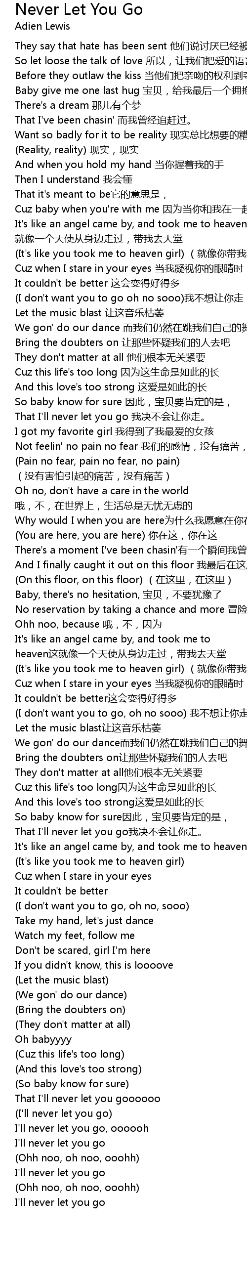 | That I'll never let you go 我决不会让你走。 | |