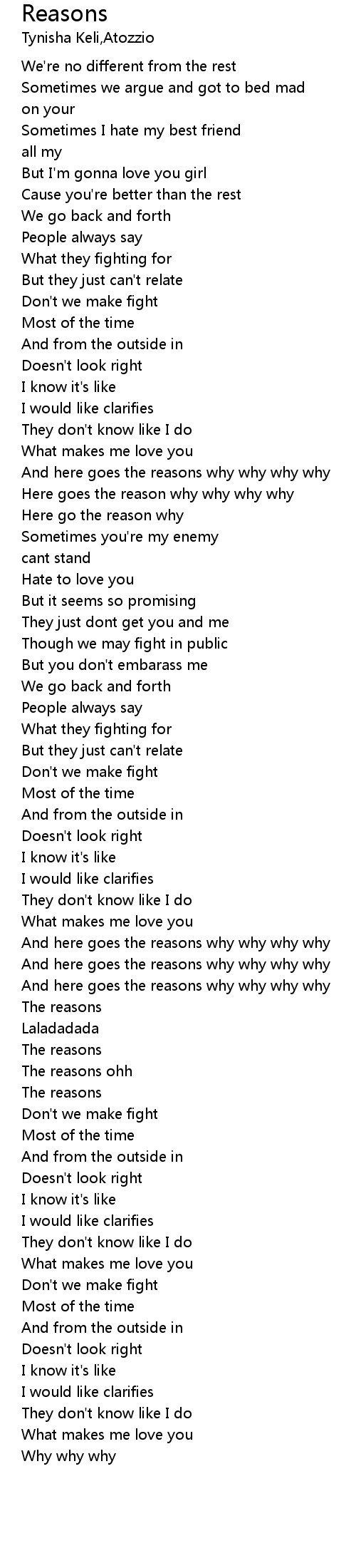 The reasons ohh |
