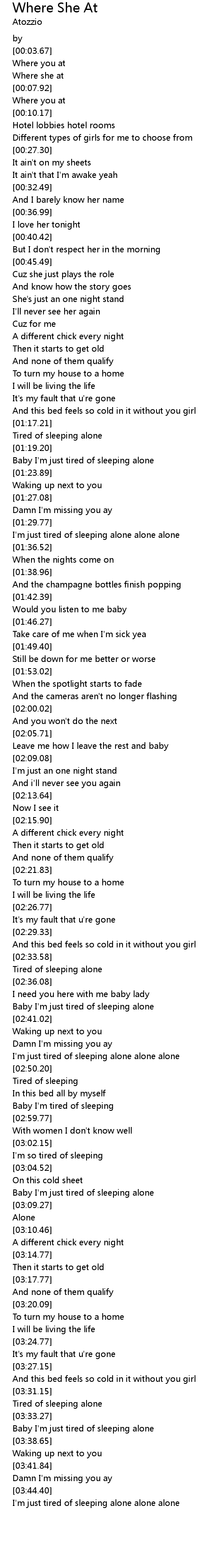 I'm just tired of sleeping alone alone alone |
