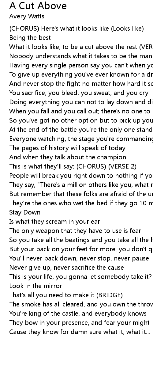 What it looks like, to be a cut above the rest (VERSE 1) |