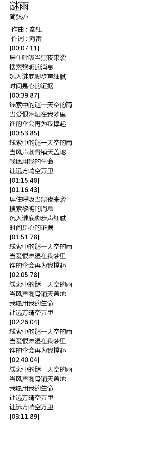 | [00:40.22] | 线索中的谜一天空的雨 |