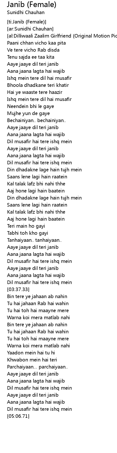 | [03:06.05] | Aaye jaaye dil teri janib |