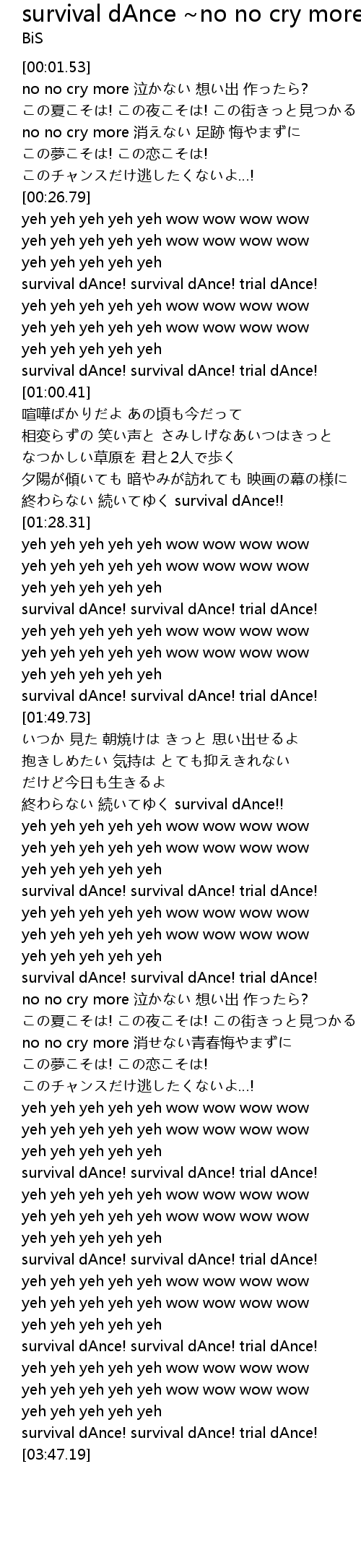 survival dAnce ~no no cry more~ -Acappella- Lyrics