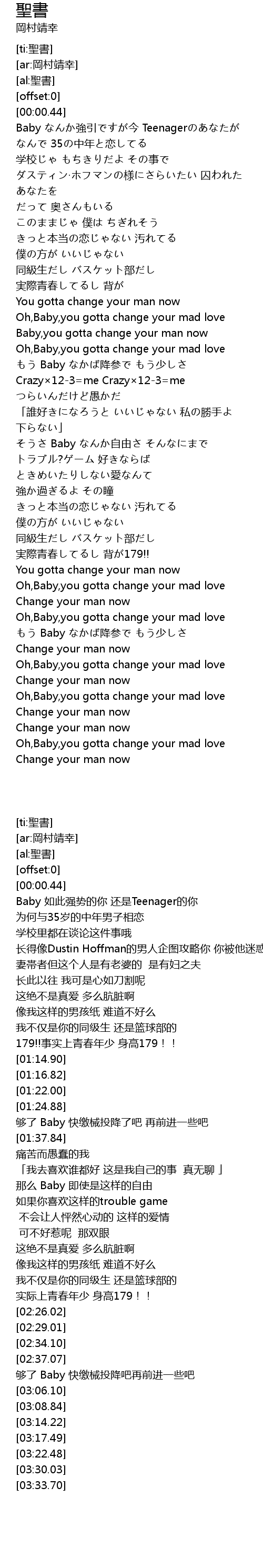 | [00:26.61] | Baby なんか強引ですが今 Teenagerのあなたが |