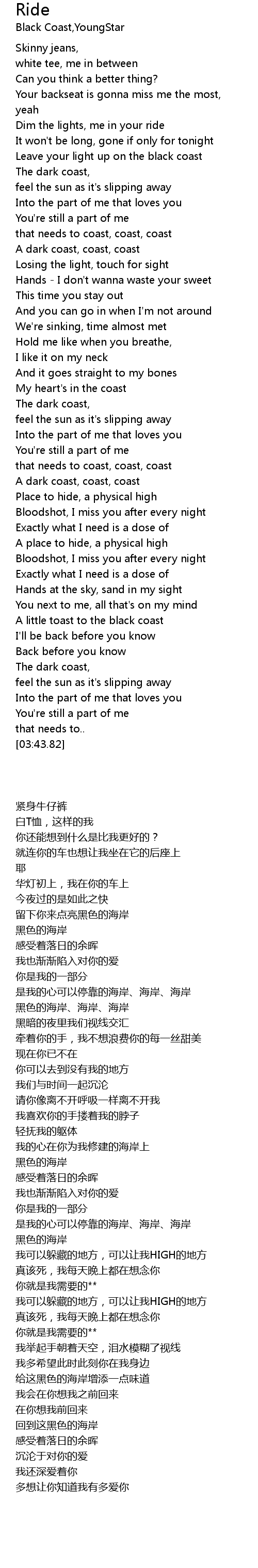 | [02:21.23] | A dark coast, coast, coast |