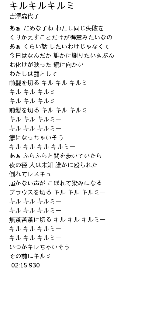 | [01:47.560] | ブラウスを切る キル キル キルミー |