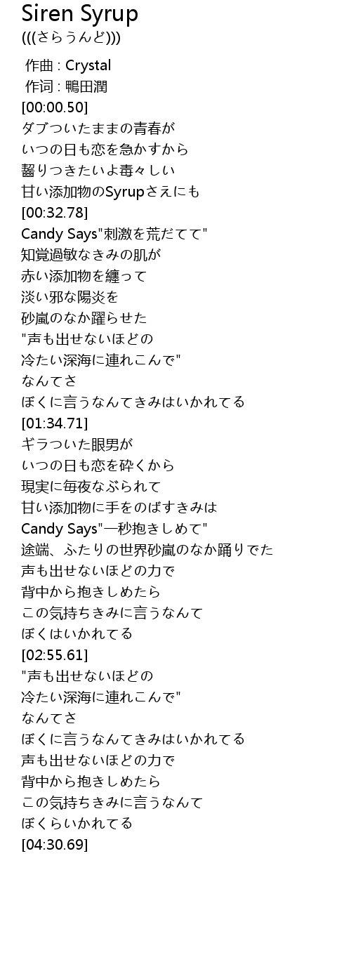 | [00:27.94] | 甘い添加物のSyrupさえにも |