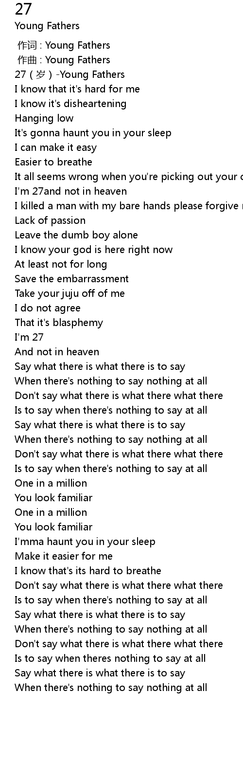 | [00:00.000] | zuò qǔ : Young Fathers |