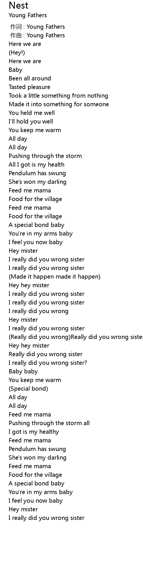 | [00:01.000] | zuò qǔ : Young Fathers |