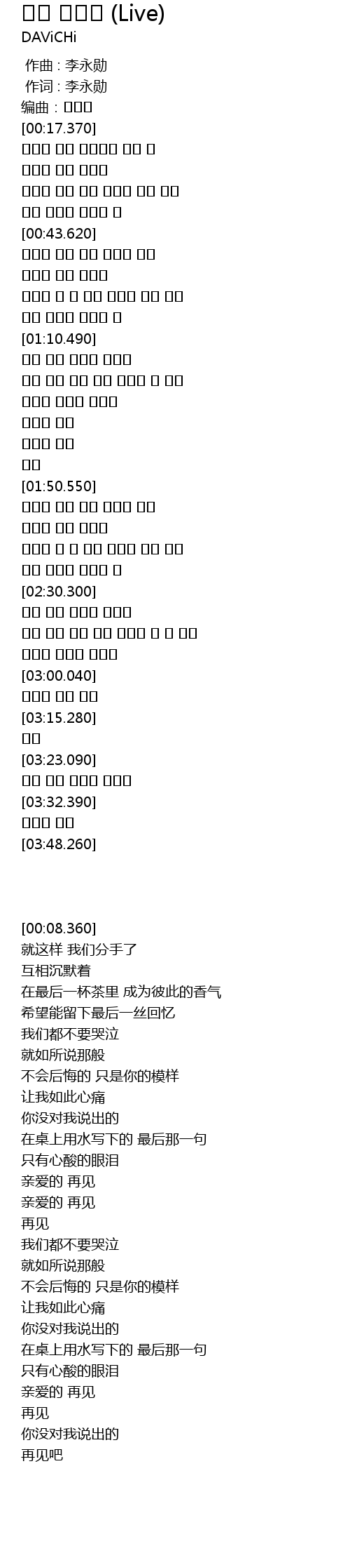 | [00:20.190] | 이렇게 우리 헤어져야 하는 걸 |