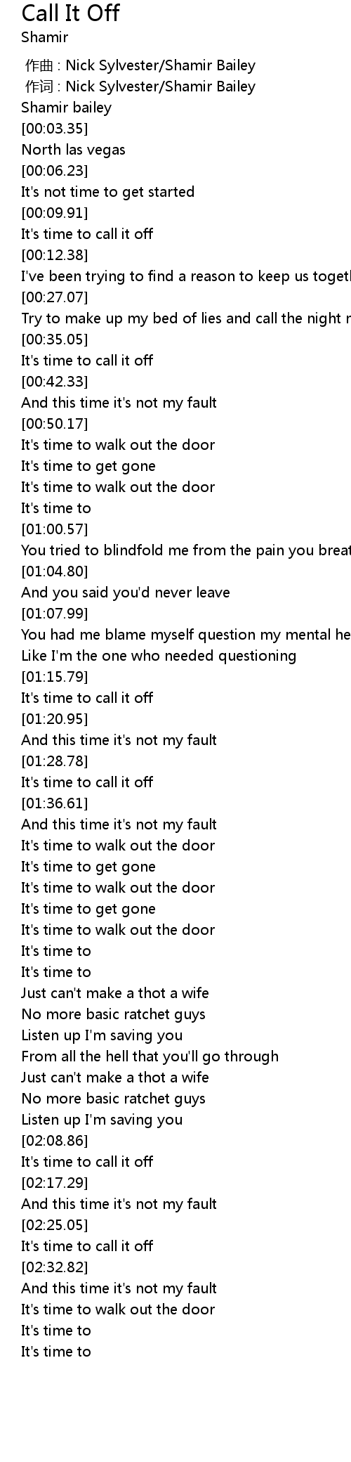| [00:00.00] | zuo qu : Nick Sylvester Shamir Bailey |