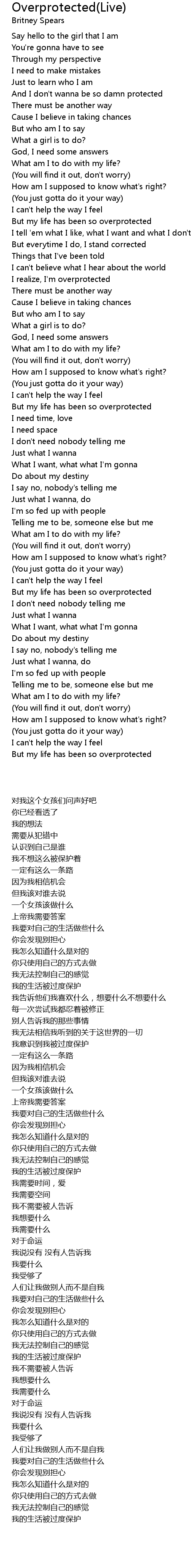 But my life has been so overprotected |