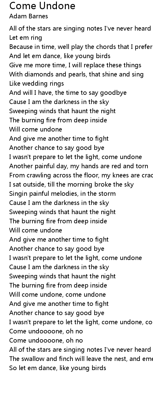 I wasn't prepare to let the light, come undone, come undone |