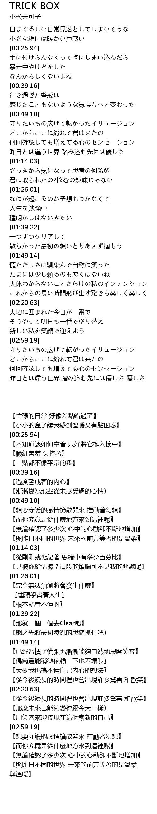 | [00:20.45] | 小さな箱には暖かい戸惑い |