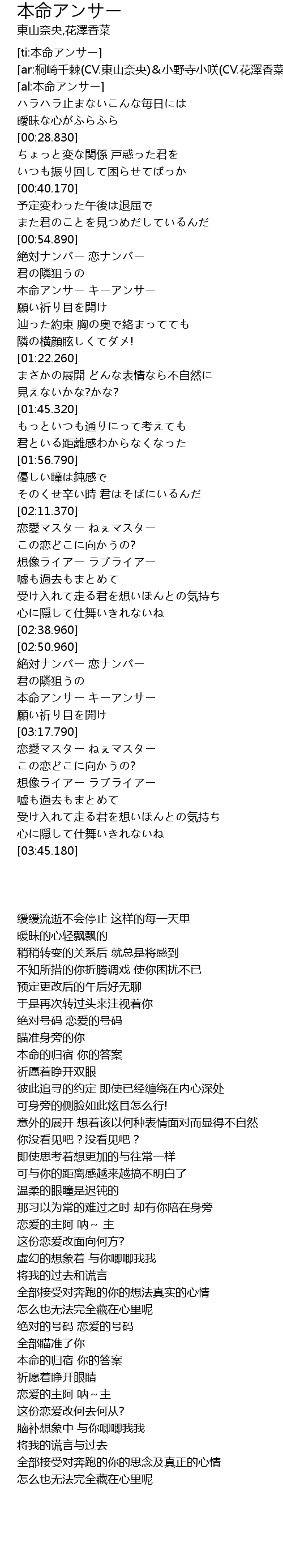 | [00:55.890] | 絶対ナンバー 恋ナンバー |
