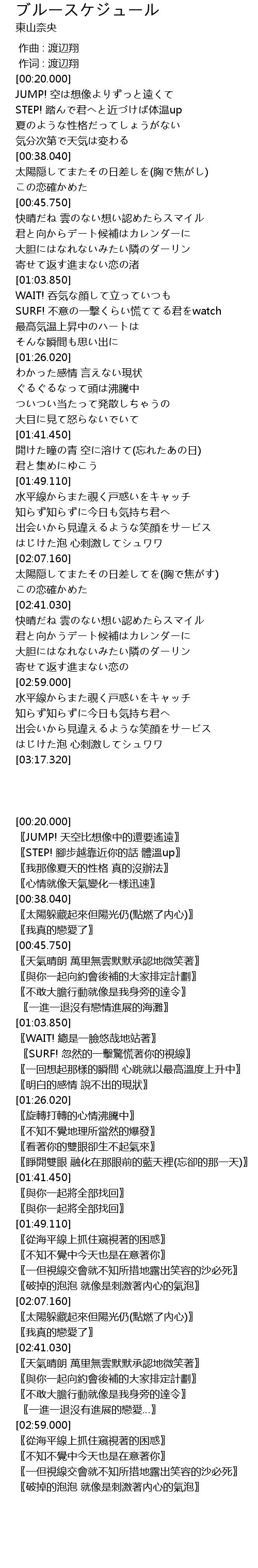 | [00:01.00] | 作词 : 渡辺翔 |