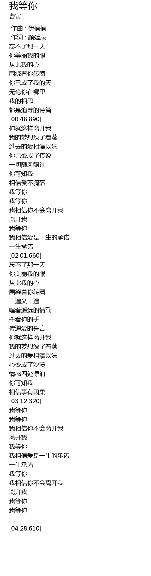 | [01:44.710] | 我相信爱是一生的承诺 |