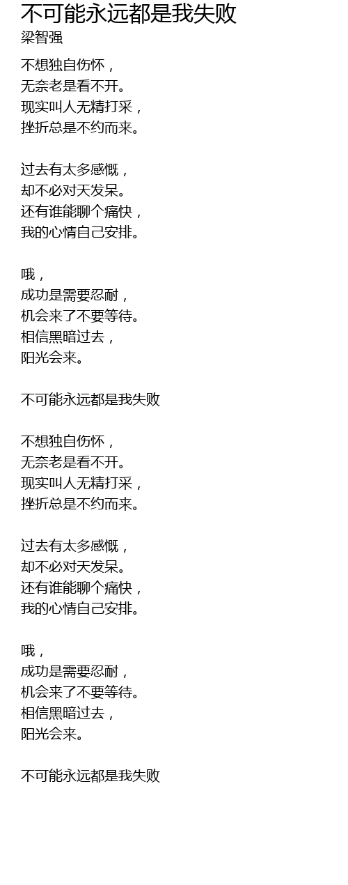 | bù kě néng yǒng yuǎn dōu shì wǒ shī bài |