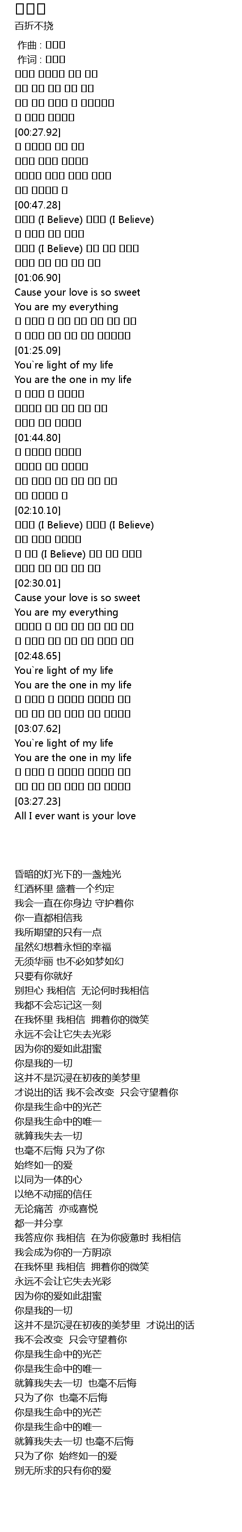 | [02:10.44] | 약속해 (I Believe) 힘들때 (I Believe) |