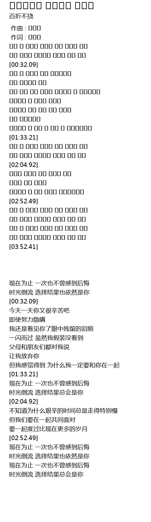 | [03:06.38] | 다시 시간을 돌린대도 선택은 항상 너야 |