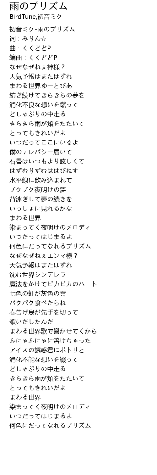 | [00:00.423] | 初音ミク-雨のプリズム |