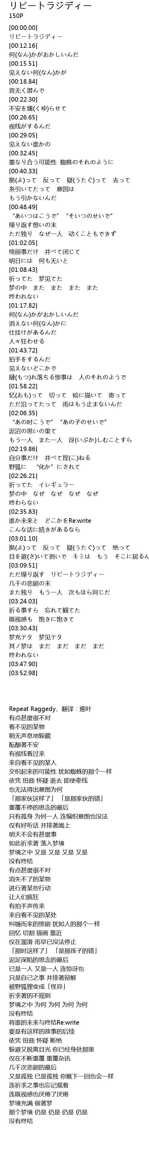 | [03:11.05] | ただ缲り返す リピートラジディー |
