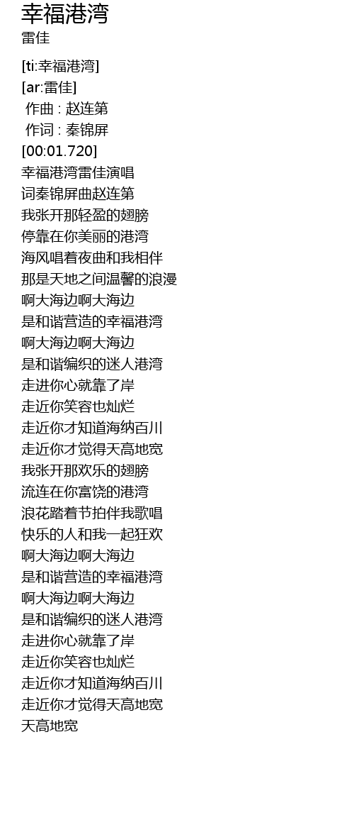 | [00:27.53] | 幸福港湾雷佳演唱 |