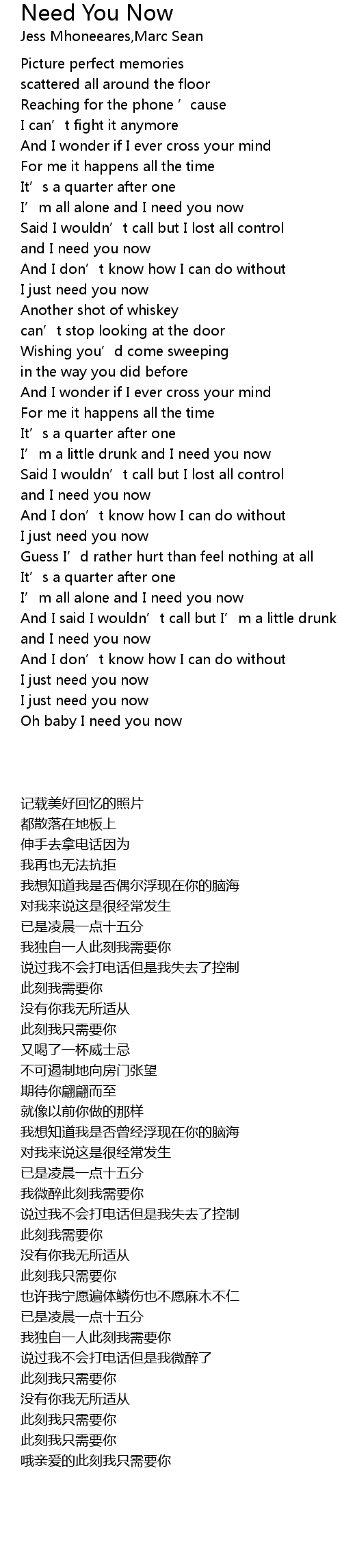 | [01:57.44] | and I need you now |