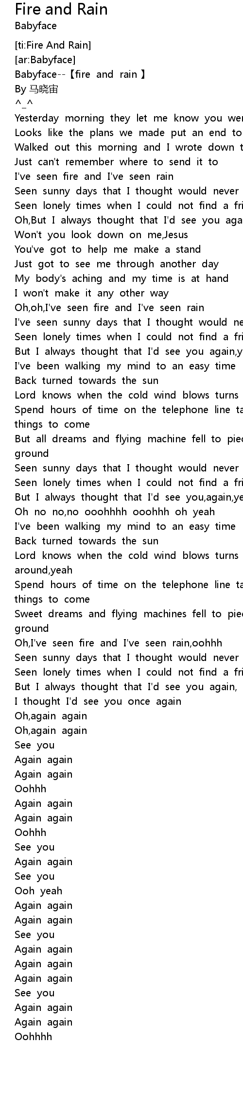 | [00:38.102] | I' ve seen fire and I' ve seen rain |